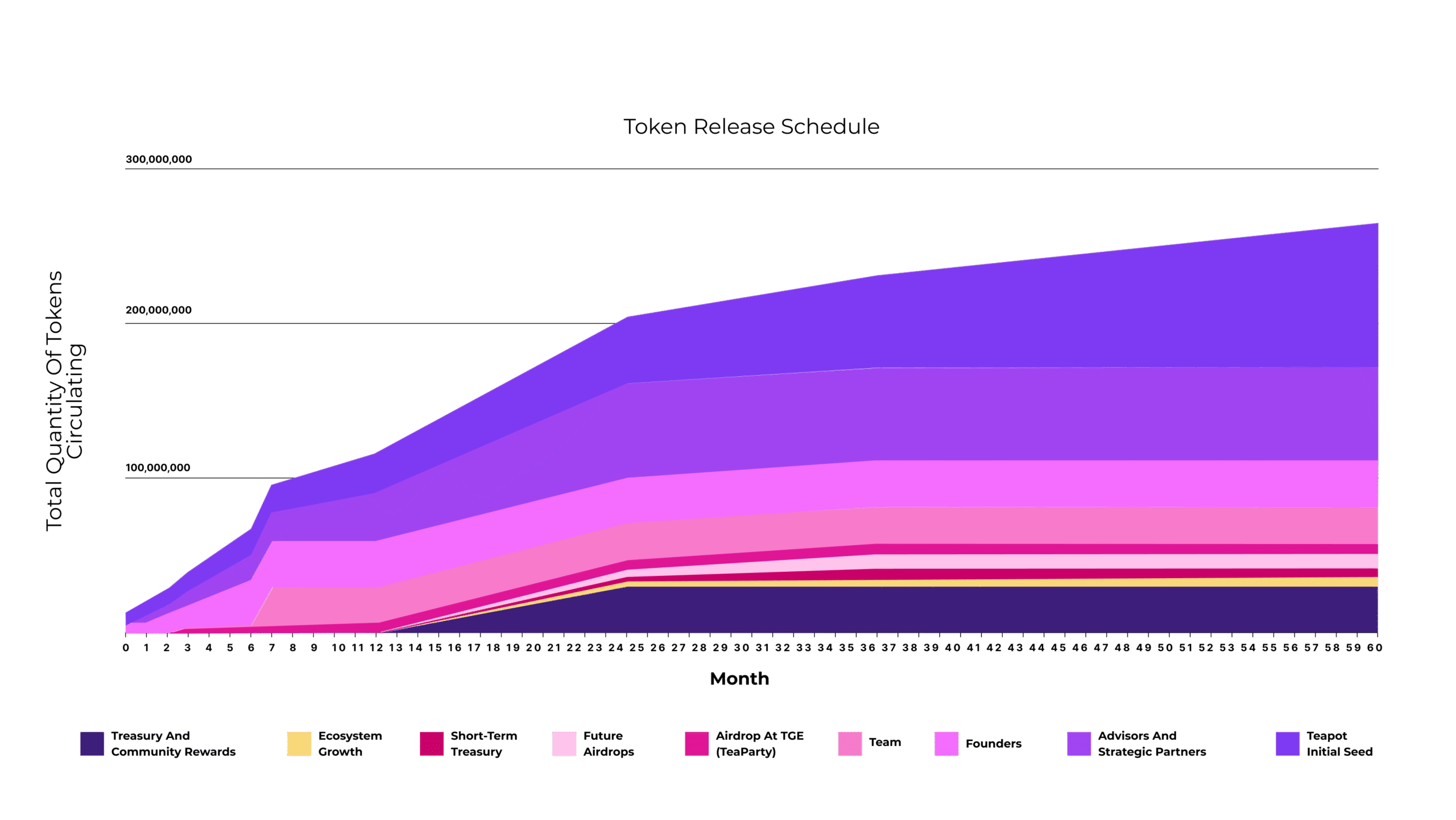 The total supply of $TEA is capped at 300 million tokens, distributed across strategic allocations that balance ecosystem stability, community ownership, and future expansion.