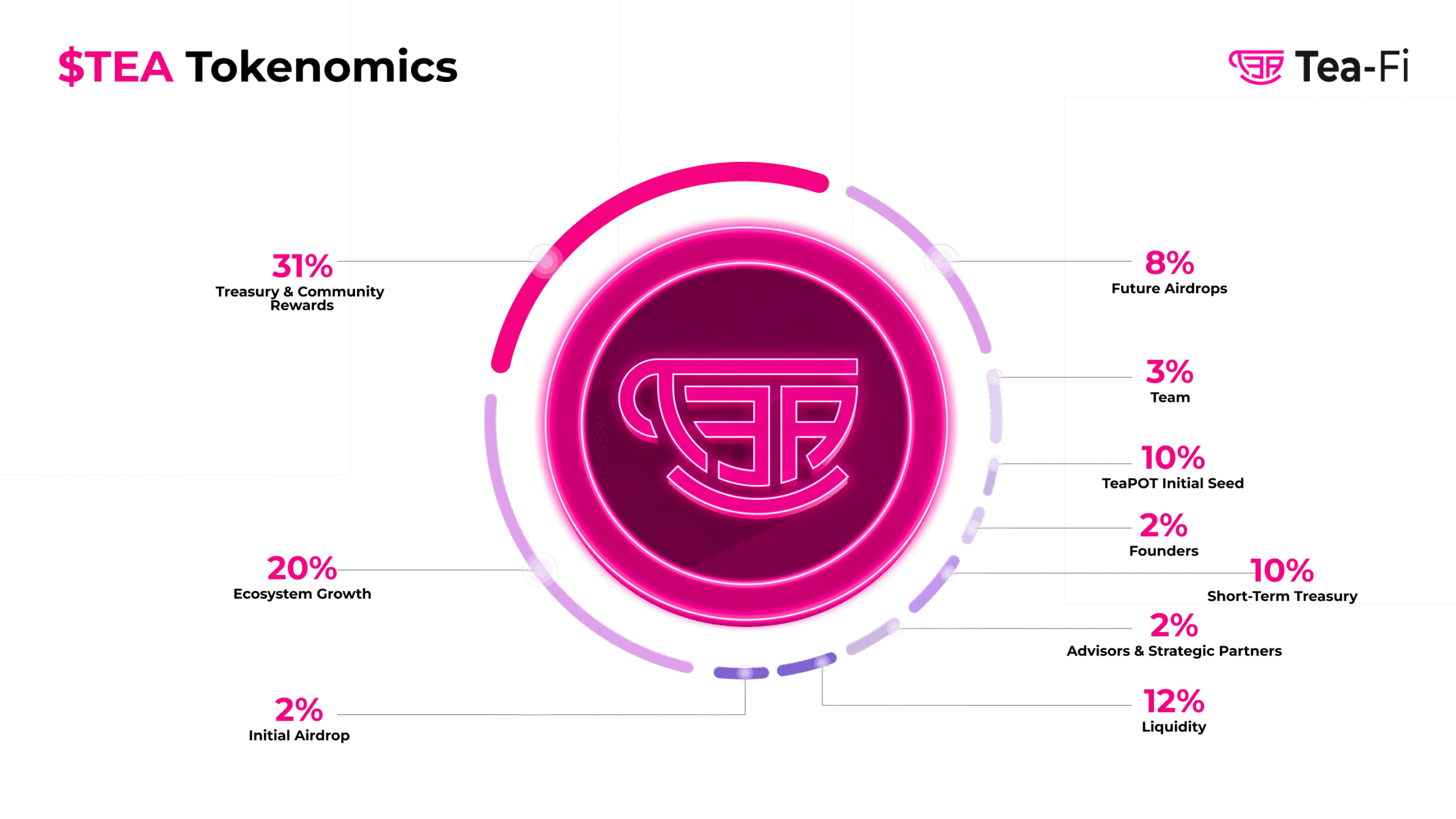 Tea-Fi’s tokenomics are built to reward users who contribute to network activity and community development.